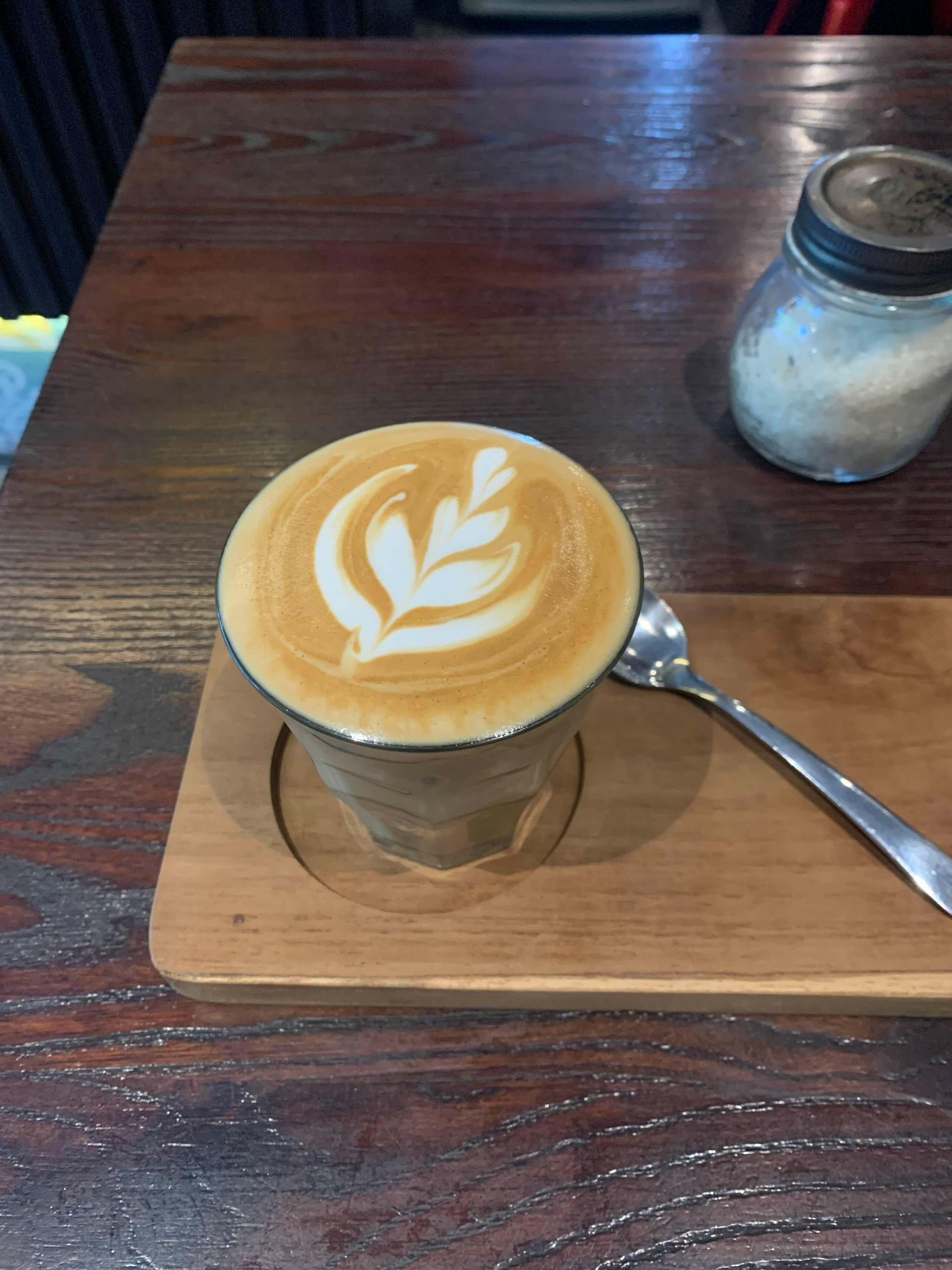 이건 다른날 갔던건데 이날도 동일하게 바나나 초콜렛 페이스트리랑 플랫화이트를 먹었다. 카페 규모가 큰 편은 아니라 1층에는 테이블이 몇 개 없고, 오픈 시간에 가면 좀 어우선한 느낌이긴 하다. 그래도 수준급 플랫화이트를 먹고 싶다면 이만한 곳이 없다.