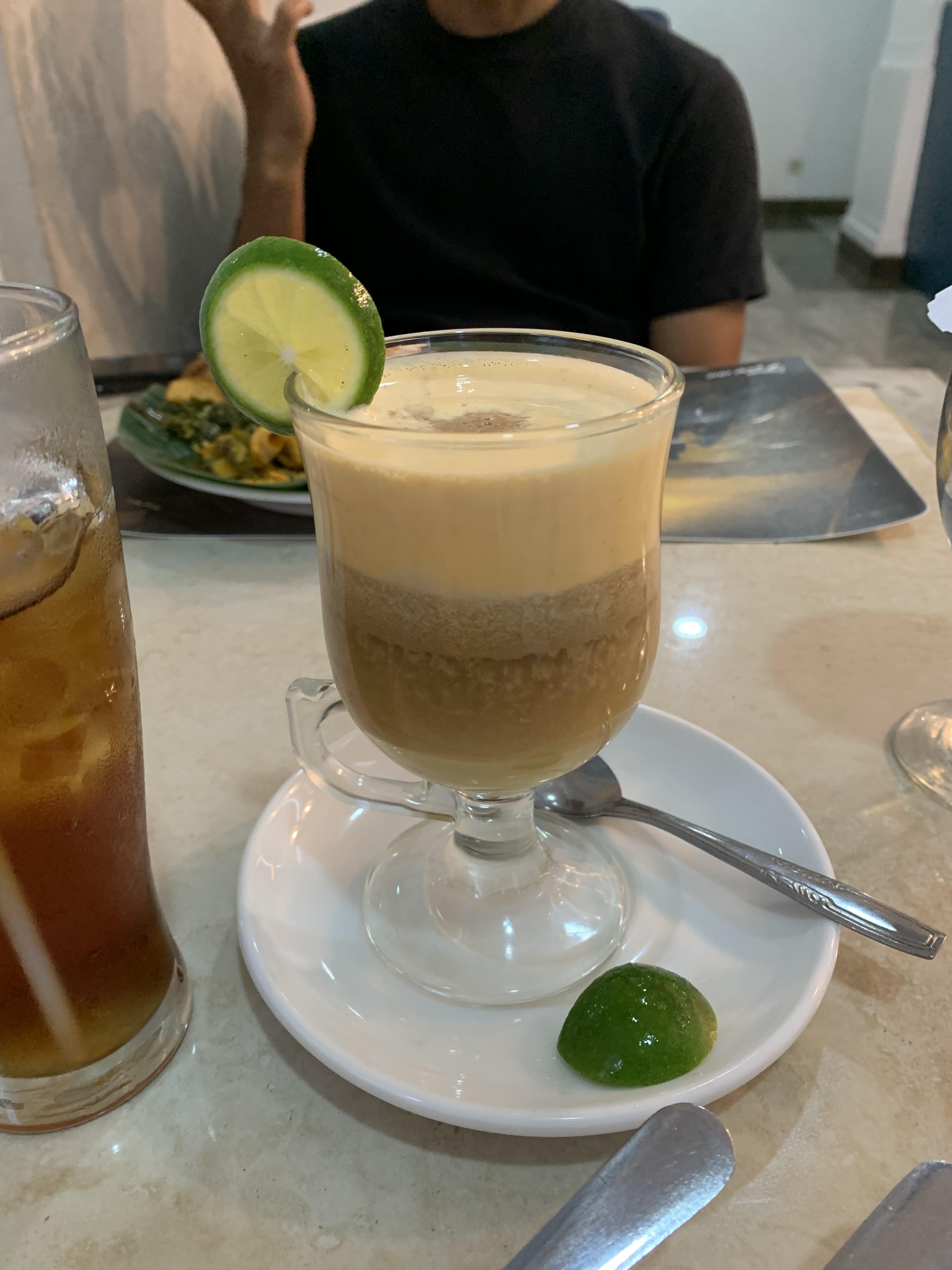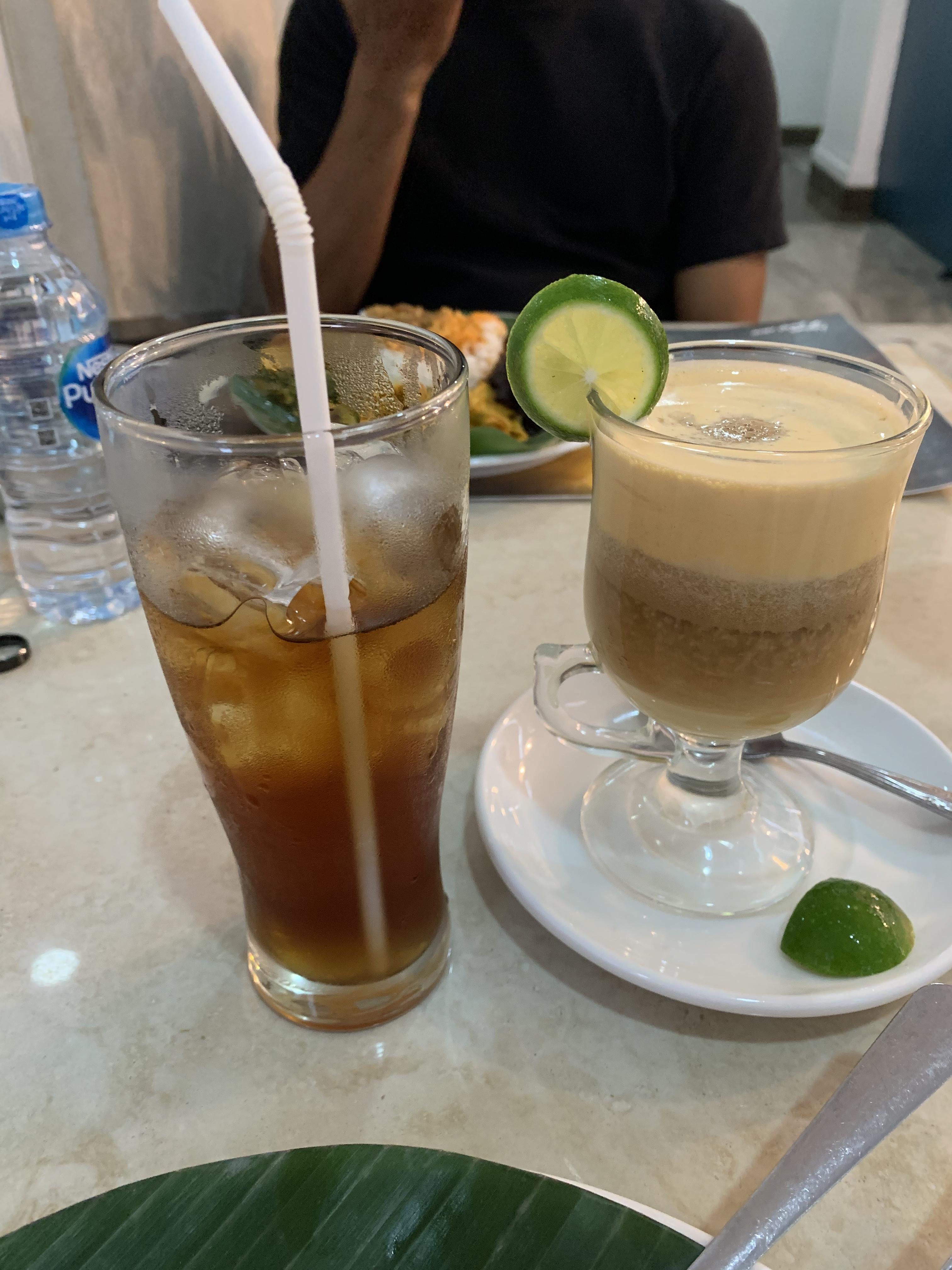 음료는 설탕 안들어간 플레인 아이스 티인 Es Teh Tawar (에스떼따와르)와 계란이 들어간 달달한 티인 Teh Talua (떼딸루아)를 주문했다. 떼딸우라는 생각보다 파는 곳이 많지 않아서 같이 간 현지인 친구는 메뉴판에서 보고 반갑다며 주문했다. 떼딸루아는 베트남 에그커피랑 비슷한 컨셉인데 커피 대신 티가 들어갔고 베트남 에그커피보다 많이 달다. 그래도 한국에는 없는 컨셉이니 인도네시아 여행중이라면 시도해 보는 것 추천한다.